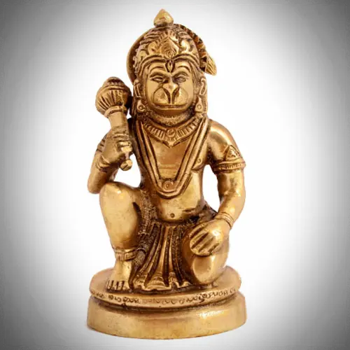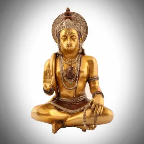 Hanuman Statue aus poliertem Messing sitzend ca. 29 cm