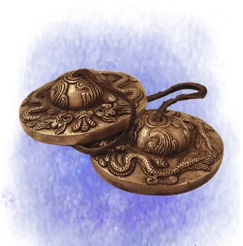 Zimbeln, tibetisch "Chappa", werden besonders von buddhistischen Mönchen während bestimmter Rituale verwendet, sind aber auch aus der schamanischen Tradition bekannt. Durch den Klang der Zimbeln sollen die Götter, welche zuvor von den Trommeln auf die Erde gerufen worden sind, dazu bewegt werden, auf dieser noch ein wenig zu verweilen. Zimbeln können auf verschiedenste Weise angeschlagen werden. Um eine durchdringende Wirkung zu erzielen, werden die Zimbeln im rechten Winkel leicht gegeneinander geschlagen. Ein sanfter, singender Ton entsteht hingegen, wenn man die Zimbeln waagerecht aneinander klingen lässt. Hält man jedoch vor jedes Ohr eine klingende Zimbel, so wird ein Stereo Effekt erzeugt, welcher dem Hörenden das Gefühl vermittelt den kristallklaren Klang mitten im Kopf zu vernehmen. Zimbeln eigenen sich im täglichen Gebrauch hervorragend zur Einstimmung auf die Meditation. Ihr hoher Klang hilft nicht nur die Umgebung und den Alltag zu vergessen, ihre klaren Töne fördern zudem die Harmonisierung des Körpers, da sie beruhigend auf Geist und Seele einwirken. Jedoch sollten Zimbeln keineswegs nur von Meditierenden genutzt werden, ihr Klangwellenspiel erzeugt bei vielen Menschen ein Gefühl der Gelöstheit und der Befreiung. Auf diese Weise wird Entspannen nach einem harten Tag leichter gemacht. Das Klingen der Zimbeln regt zudem die beiden Gehirnhälften des Menschen an und fördert so dessen Kreativität.