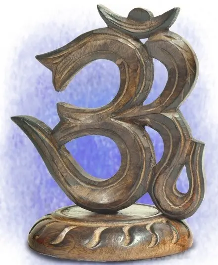 Sehr massive Holzschnitzerei eines indischenOm oder AUM -Zeichen aus Mango Holz.