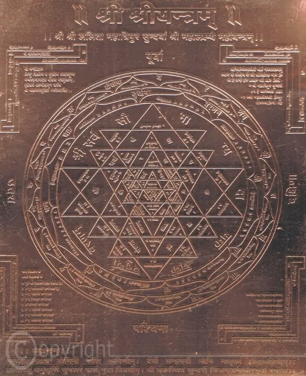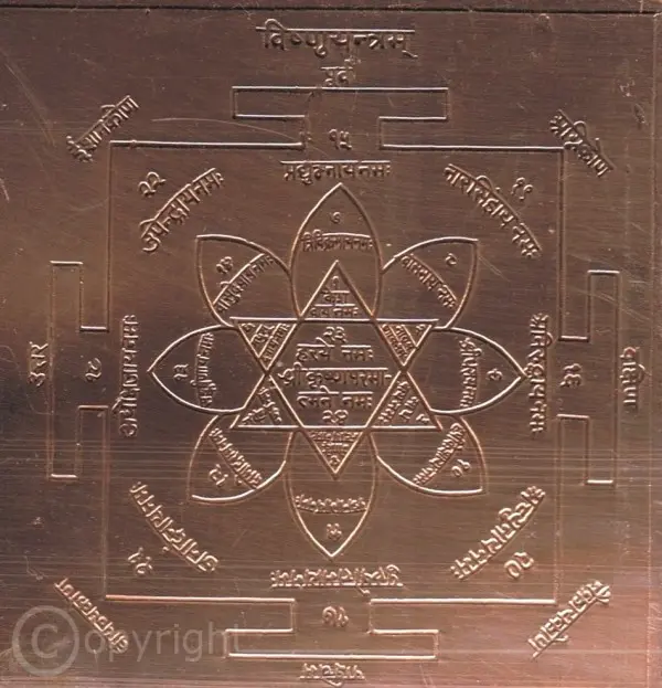 Die Kupferyantras sind zwischen 8 x 10 cm und 12 x 15 cm groß. Yantras stehen als Symbol und Abbild für Energien und Kräfte im Universum. Yantras aus Kupfer harmonisieren, entstrahlen und entstören. Linien und Schrift verstärken und energetisieren die aus reinem Kupfer gefertigten indischen Yantra-Platten. Mit Größen zwischen 8x10 (Shri-Yantra klein)und 12x15 cm (Shri-Yantra-groß) lassen sich die Kupferyantras gut überall in der Wohnung aufstellen, wo ihre ausgleichende, entstörende und energetisierende Wirkung gewünscht wird. Mehr Infos zu Kupfer-Yantras